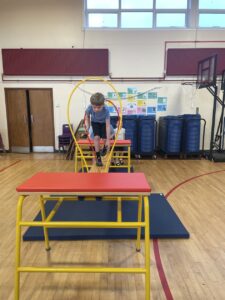 We have been learning about the different skills of being a gymnast. First we had to warm up all our body by stretching then we thought about how to be safe on the equipment.