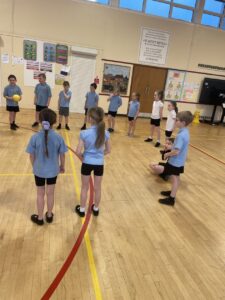 We were playing teamwork games at P.E. to show we have the skills of a good team player.