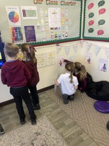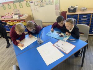 P3 were recalling all the sounds they have learned by going on a class word hunt. They used the words to make sound poster to share with the rest of the class.