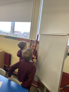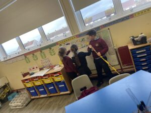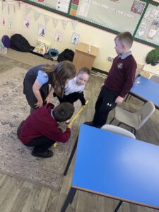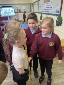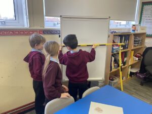 Then we used metre sticks to see which items were tall and smaller. We found out there are 100 cms in a metre.