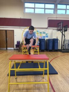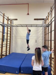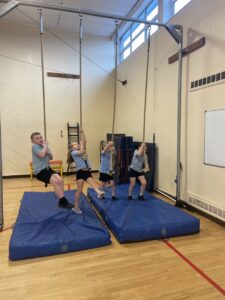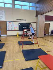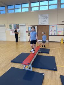 We have been learning about the different skills of being a gymnast. First we had to warm up all our body by stretching then we thought about how to be safe on the equipment.
