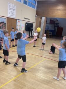 We were playing teamwork games at P.E. to show we have the skills of a good team player.