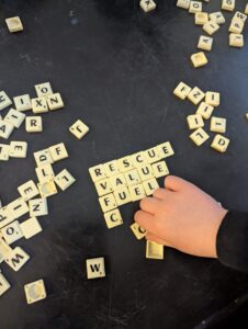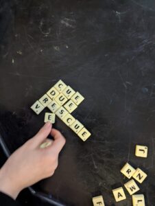 We also enjoyed making our spelling words out of Scrabble tiles.