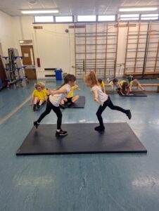 In gymnastics we have been learning different types of rolls with a focus on safety in the gym hall.