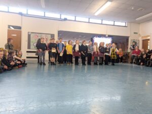Well done to all the pupils who gave a fantastic performance of the Jeely piece song! The Primary 3’s did a fantastic job of learning their poem Bumbees and equally Primary 4 impressed with their recital of A Dug, A Dug.