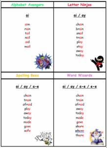 This week we have been learning the ‘ai’ phoneme and its spelling variations.  See below.
