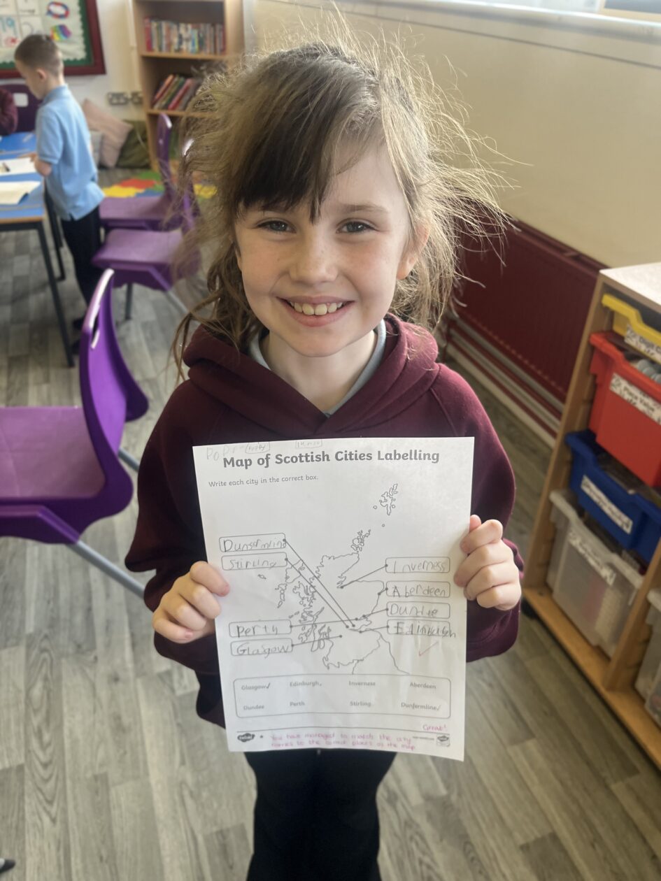 In numeracy we have been beginning to learn how to divide with remainders. In literacy we have been using interesting vocabulary to write a description of the Loch Ness Monster. We have been learning lots of interesting facts about Scotland and have started our new science topic learning about the Human Body. In French we have been learning to say the months of the year and to say when our birthday is.