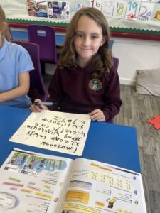 We have been continuing to practise our numbers in French and had fun playing the game ‘lotto’. We have also been learning to recognise, pronounce and spell the letters of the alphabet in French.