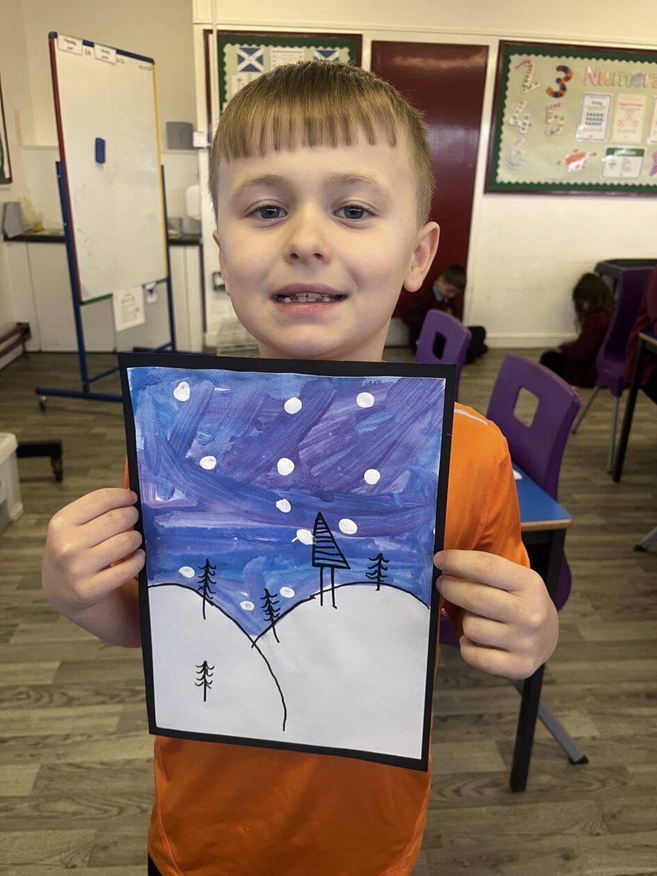 In numeracy we have been dividing by 2 and 3, in literacy we have been writing about our prior knowledge of the Loch Ness Monster and in art we have been creating beautiful winter pictures.