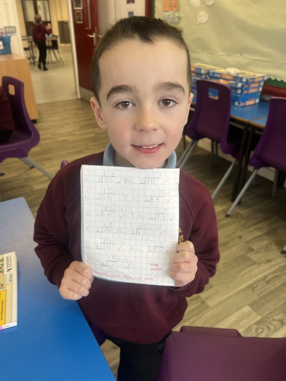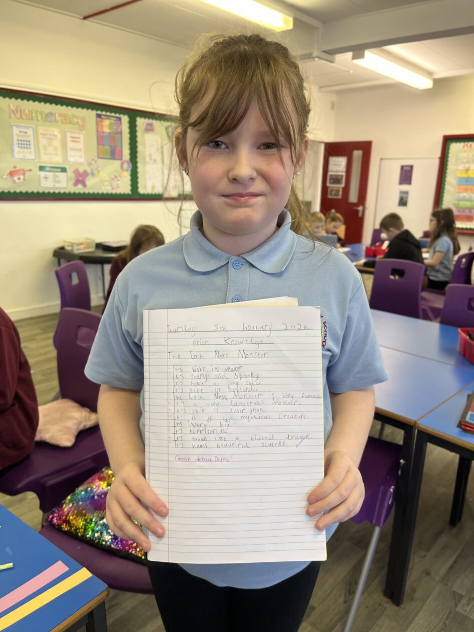 In numeracy we have been beginning to learn how to divide with remainders. In literacy we have been using interesting vocabulary to write a description of the Loch Ness Monster. We have been learning lots of interesting facts about Scotland and have started our new science topic learning about the Human Body. In French we have been learning to say the months of the year and to say when our birthday is.