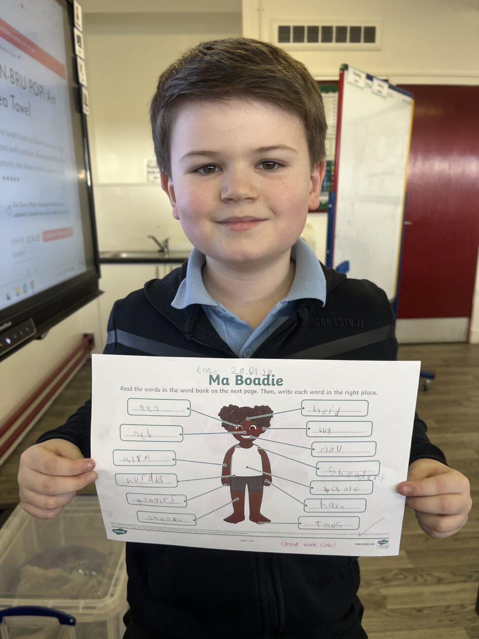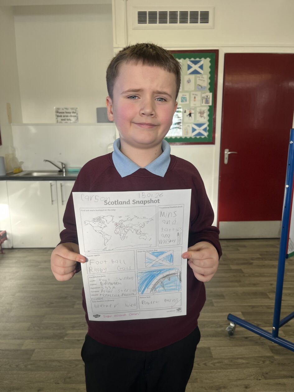 This week in P4 we chose our finalists for the Scots verse competition. Well done to Carson who was the P4 winner and to Alfie who was the runner up.