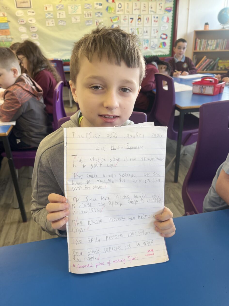 We have been working so hard on our writing targets in Literacy that we are ready to move onto a new target next week. We have been learning to find a half and a quarter of an amount in Numeracy and have been learning to identify organs in the human body in Science.