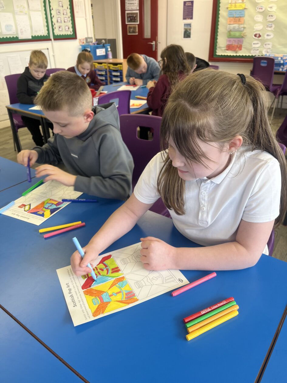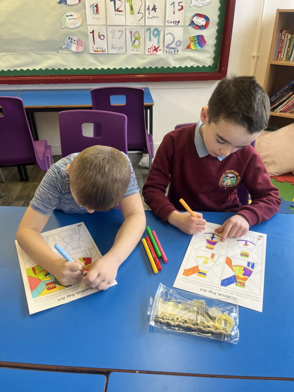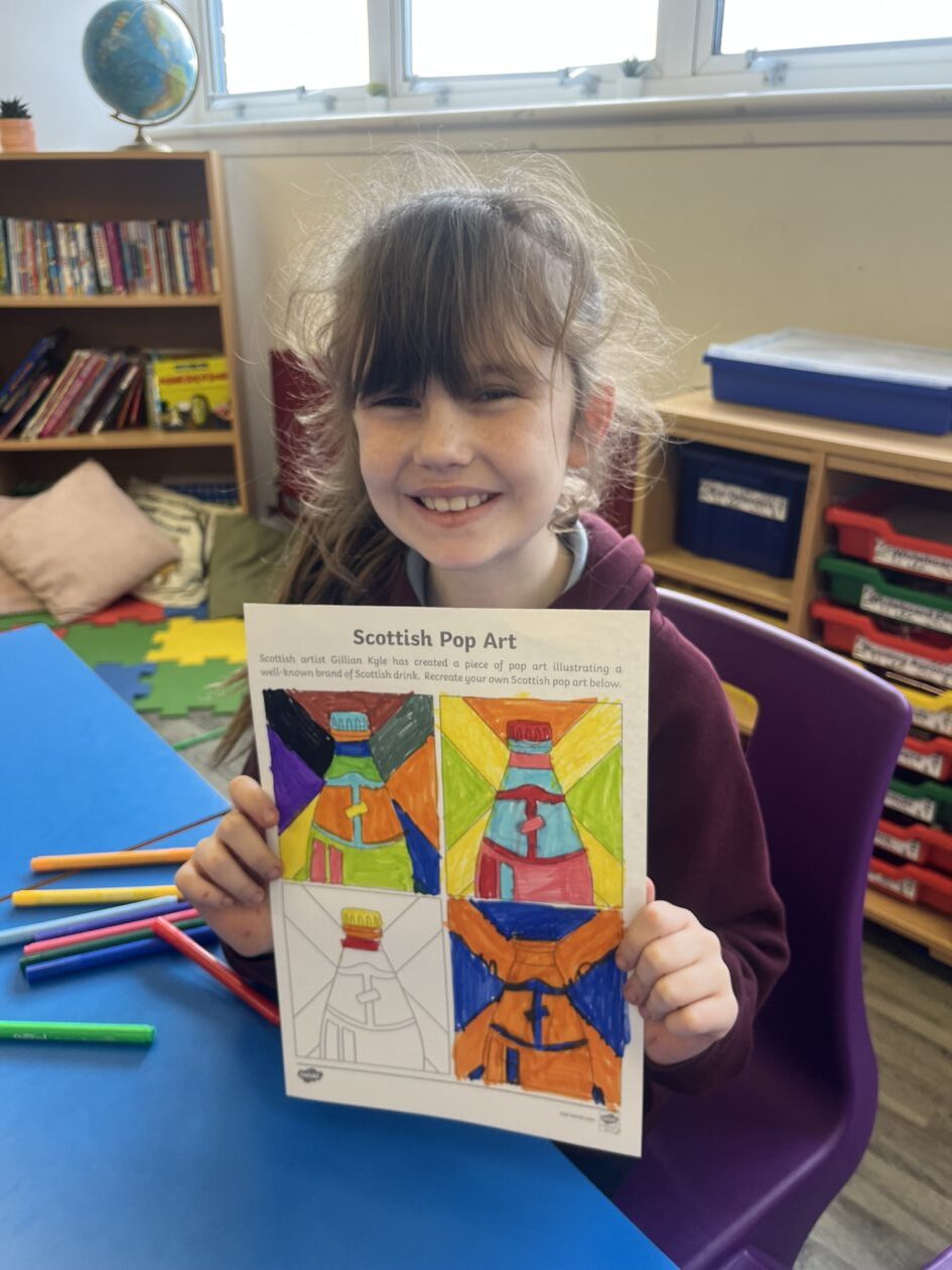 In art we have been learning about the Scottish artist Gillian Kyle and have been creating our own Scottish pop art pictures.