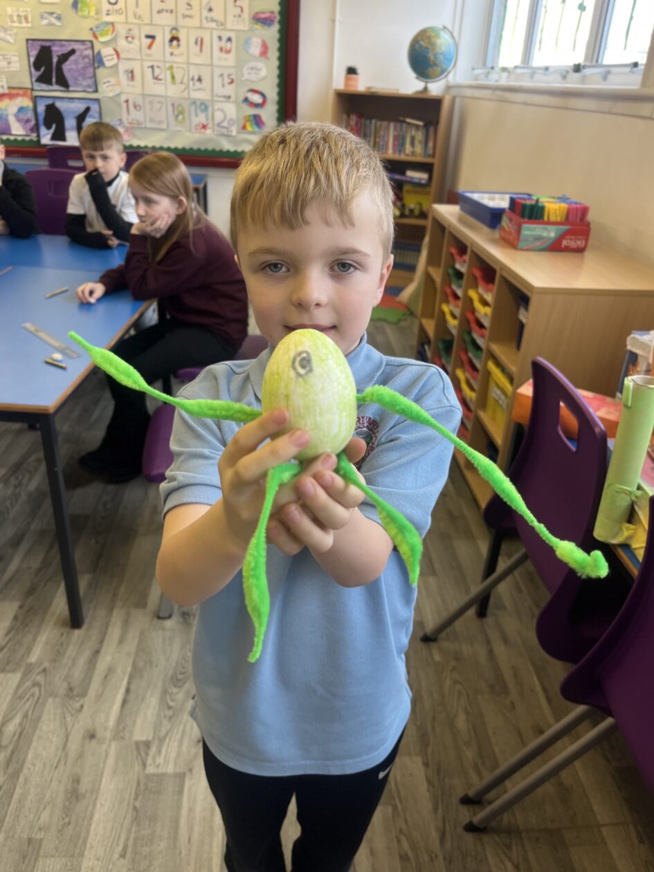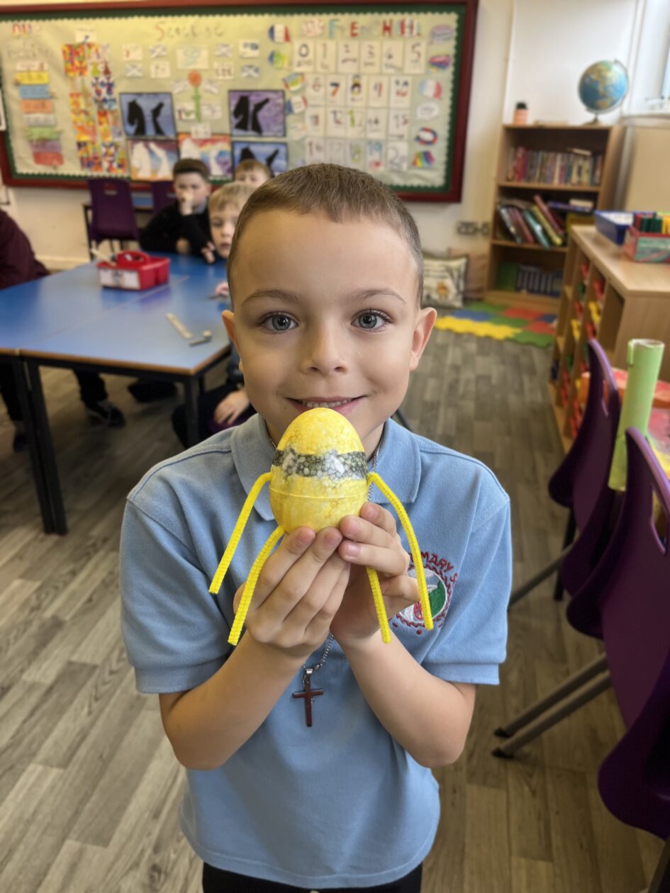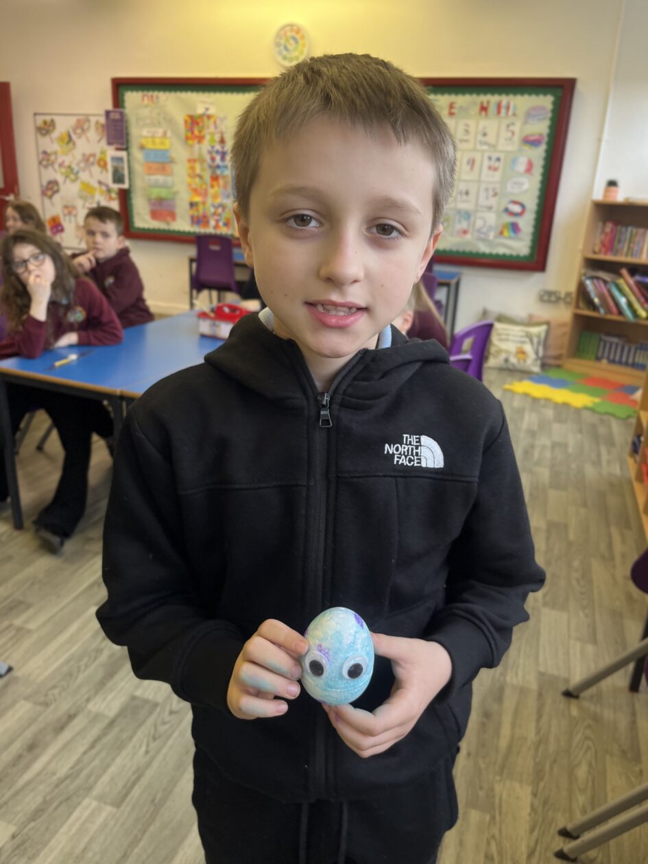 Primary 4 have been decorating eggs for our whole school Easter egg competition this week. The pupils came up with some great imaginative ideas when decorating their eggs.