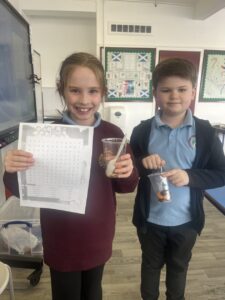 We celebrated Shrove Tuesday by making pancakes in class. We had to follow a recipe, measure out all of the ingredients needed and then we got to eat them. Some of us even had a go at flipping a pancake!