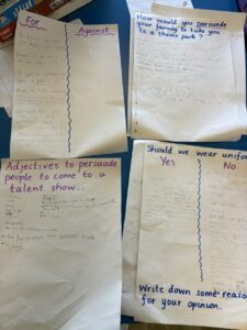 In literacy we were learning about persuasive writing and were working in groups to come up with different persuasive language.