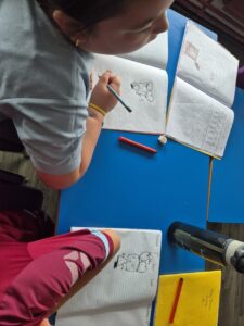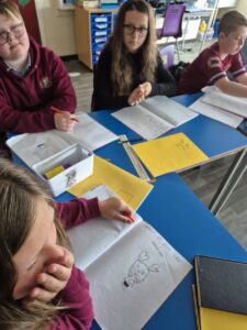 This week P6 have had a good start to Term 4. We have began to explore our new novel study – The Wreck of The Zanzibar by Michael Morpurgo. We have not yet read any of our book, but we worked in small groups to design our own covers based on the title. We then looked at all of the covers that exist for the book and wrote our predictions as to what the book will be about. We are excited to start! We have also been working on some art focused on the theme ‘On The Farm’.  We also completed an Easter mystery maths activity and have carried out some revision on Fractions.