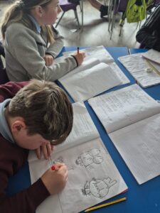P6 have been working really hard this week on their persuasive writing. We are have been learning aboht the different features of a persuasive text and have practiced using them in short pieces. We have been practicing for our Sports Championship, so far we have been doing the 100m sprint, the standing long jump and the vertical jump. Yesterday, we worked in pairs to examine a product of pupil choice that exists in shops currently. Each pair wrote about the good things about the product and suggested improvements that could be made. They then designed the new model of the product and wrote about the improvements they had made and how they would benefit the users of the products. Today we had an excellent discussion surrounding making and keeping friends. All pupils were engaged in various scenarios where they then discussed and shared how they might feel in each situation and what they would do if they happened in our/classes and school.