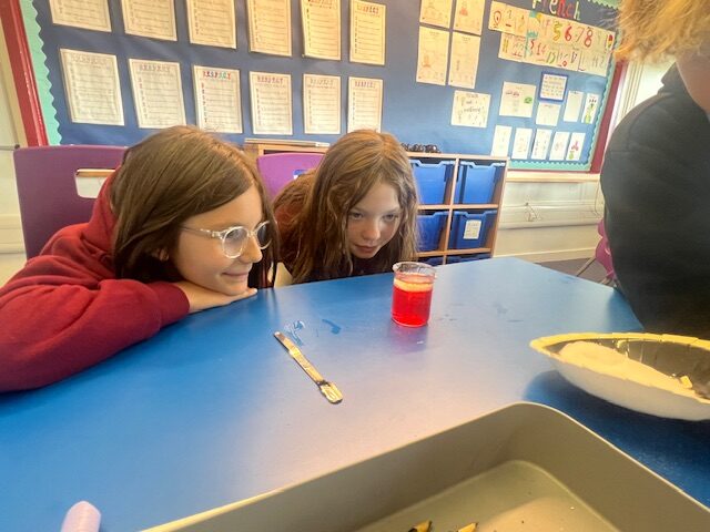 We also created our own lava lamps in science. We discovered that the salt pulled the oil down to the bottom & once the salt dissolved then the oil went back to the top.