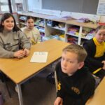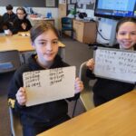 We are learning how to calculate perimeter and area in measurement. We worked in small groups taking on different rooms indoors as the weather was not great on Friday.  Each group reported back their findings and some were able to compare work done in the same space.