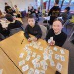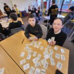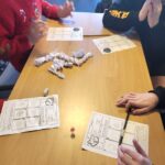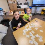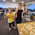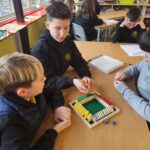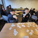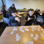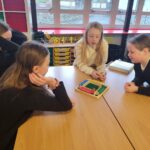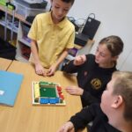 This game is called “Shut the box”. The aim of the game is to find the sum of the 2 dice and decide how to represent this with the numbers. The children must strategise as all numbers need to be used to win the game.  In the first round many players were left with number 1 and realised they were unable to complete the game as a score of 1 is not possible with 2 dice. This game is really good for encouraging quick recall of number facts and applying this in the best way to win the game.  They had so much fun that they asked for this game at wet indoor play!