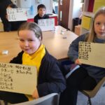 We are learning how to calculate perimeter and area in measurement. We worked in small groups taking on different rooms indoors as the weather was not great on Friday.  Each group reported back their findings and some were able to compare work done in the same space.