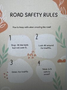 They had prepared a poster for the children which they talked about to help them remember the road safety rules.