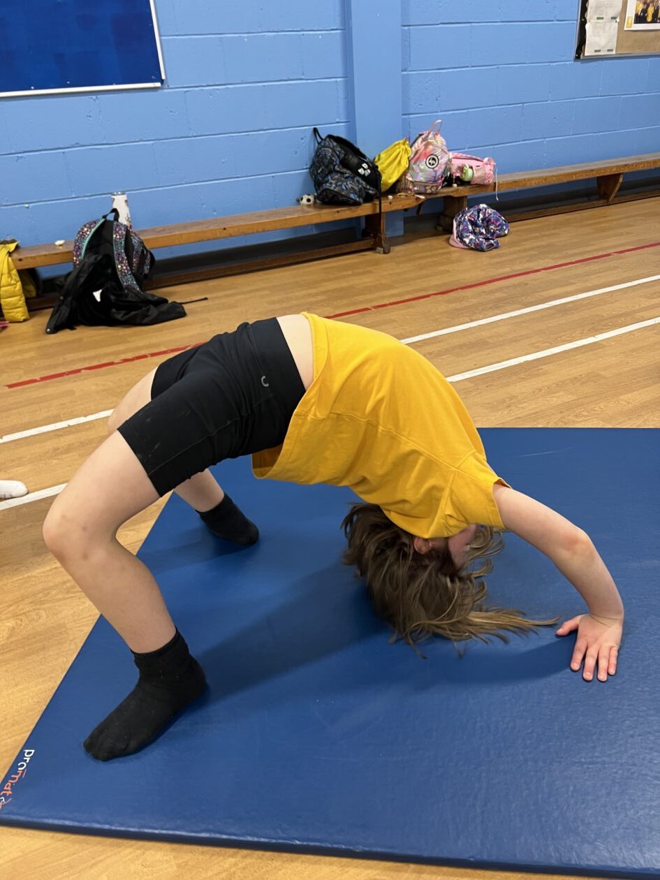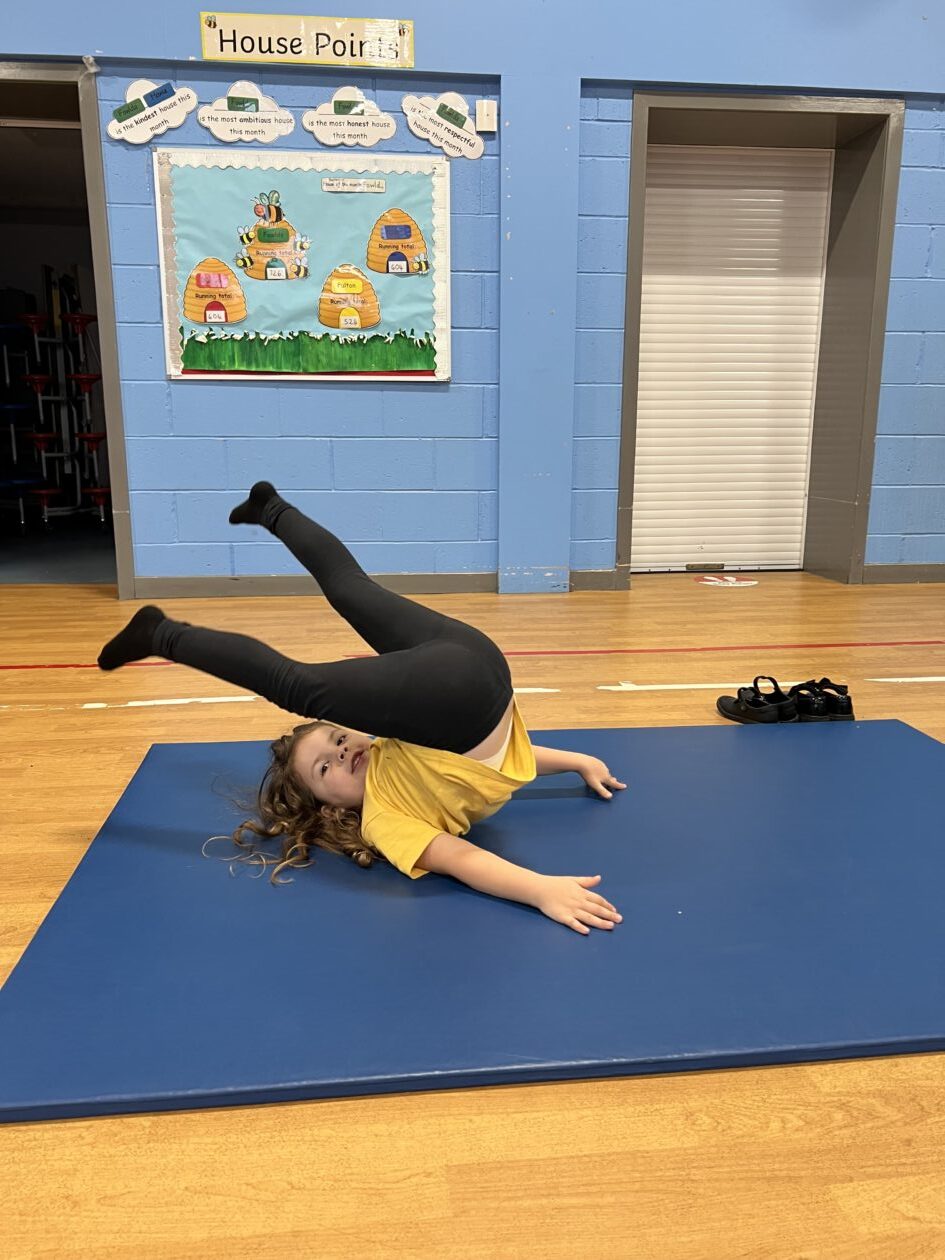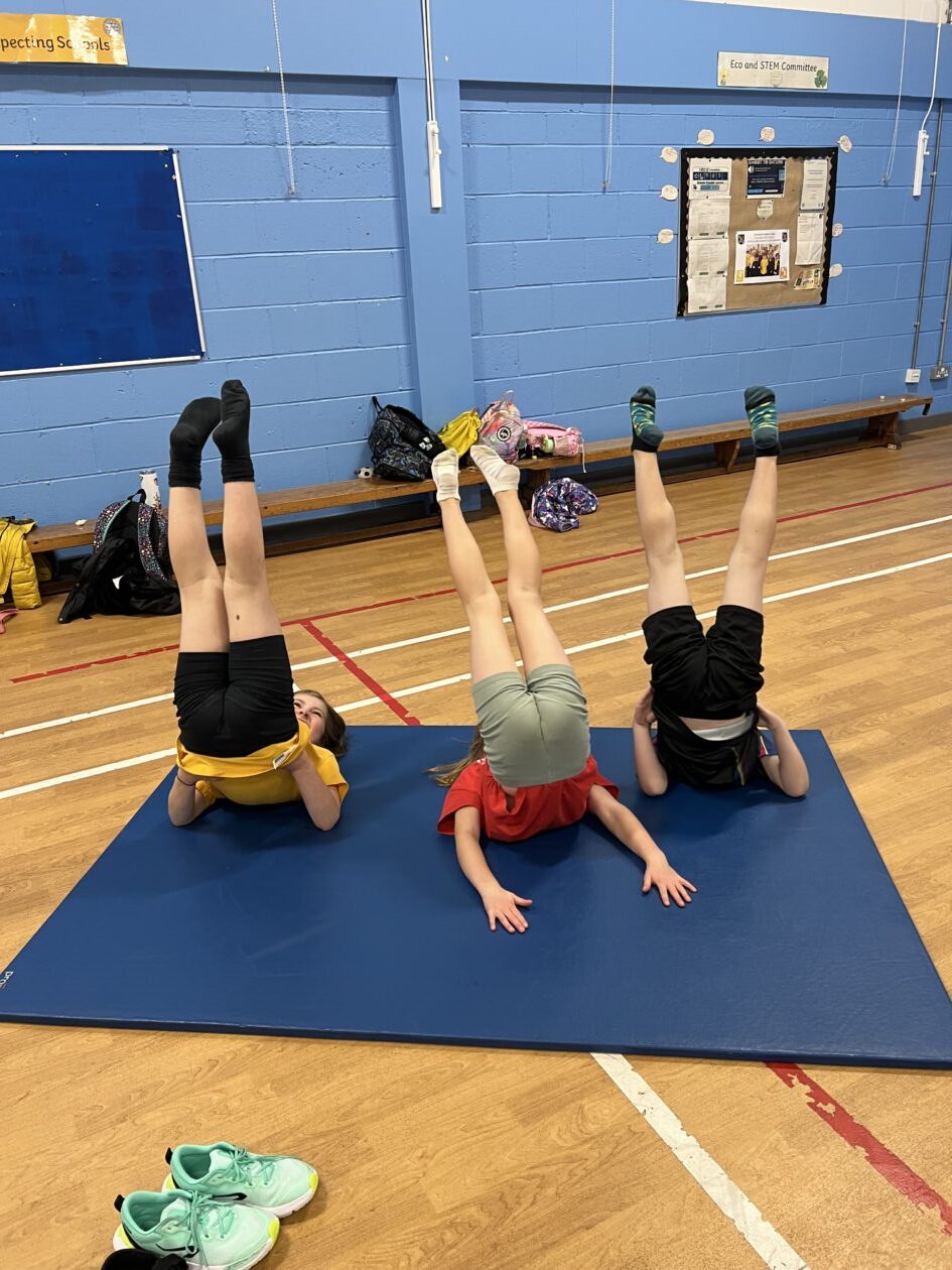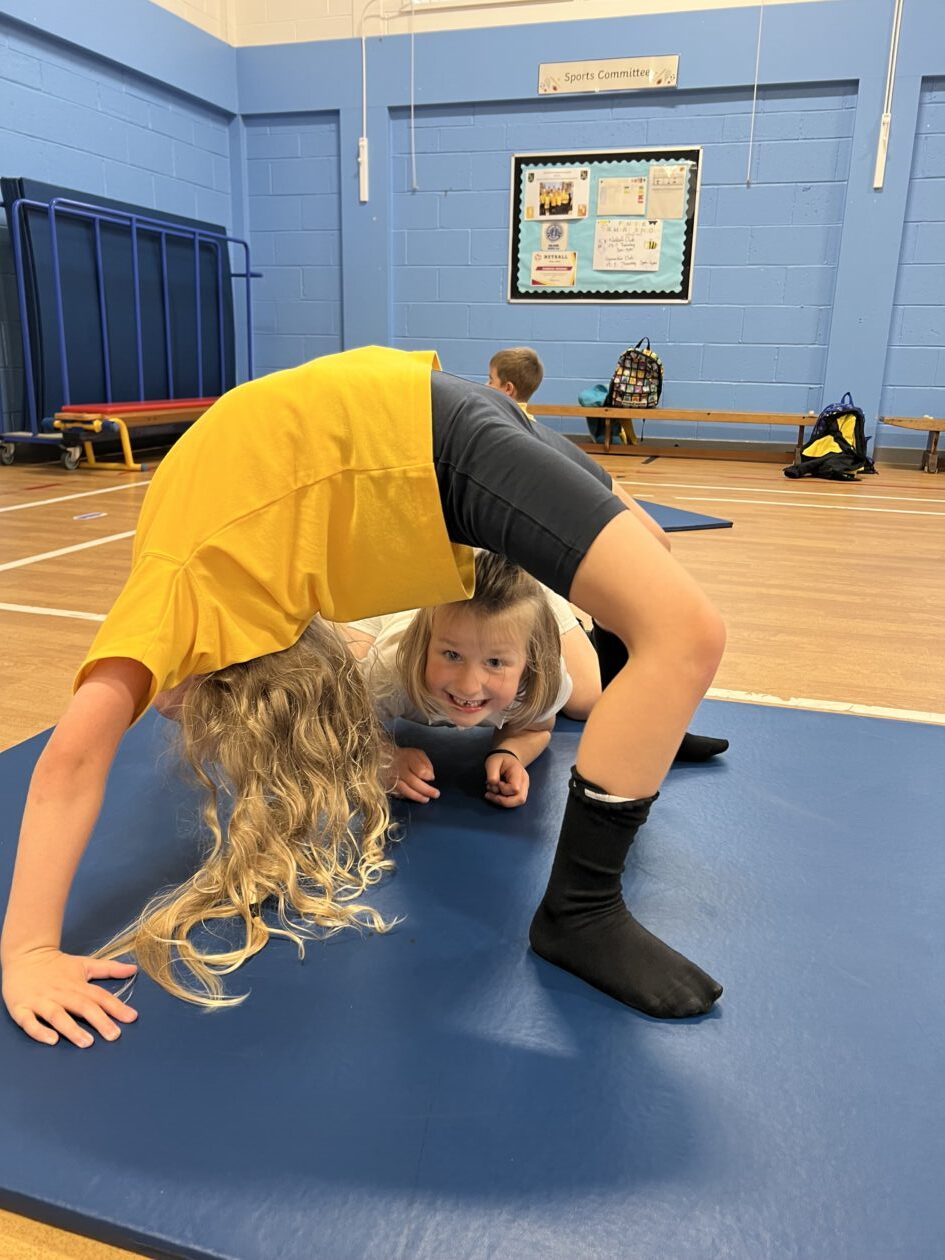 Primary 2 and Primary 3 had a great time at gymnastics club. The children learned lots of new skills and demonstrated flexibility, coordination, and balance. The children worked on cartwheels, forward rolls, a bridge, roundoffs, and a handstand and lots of paired balances.