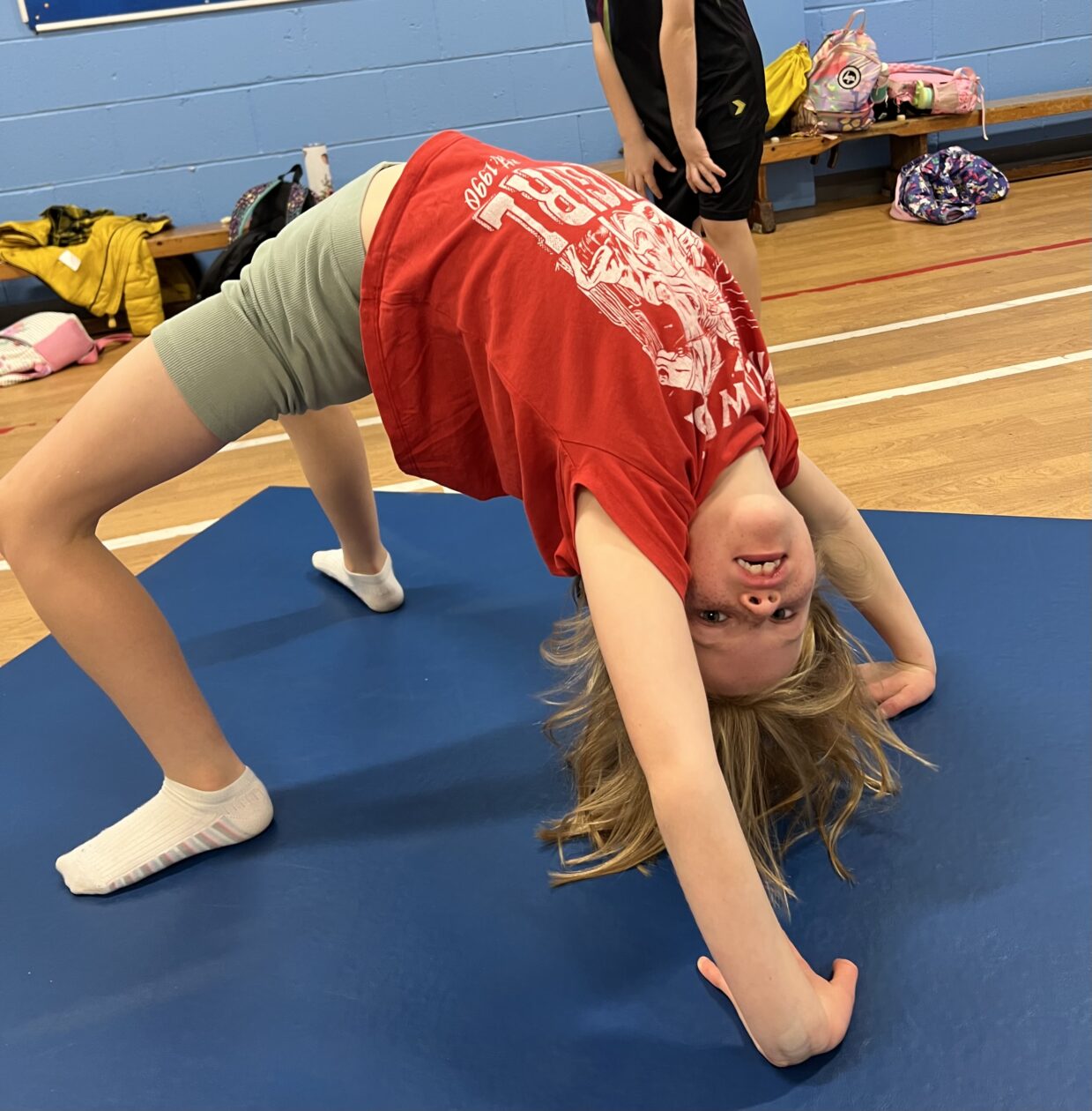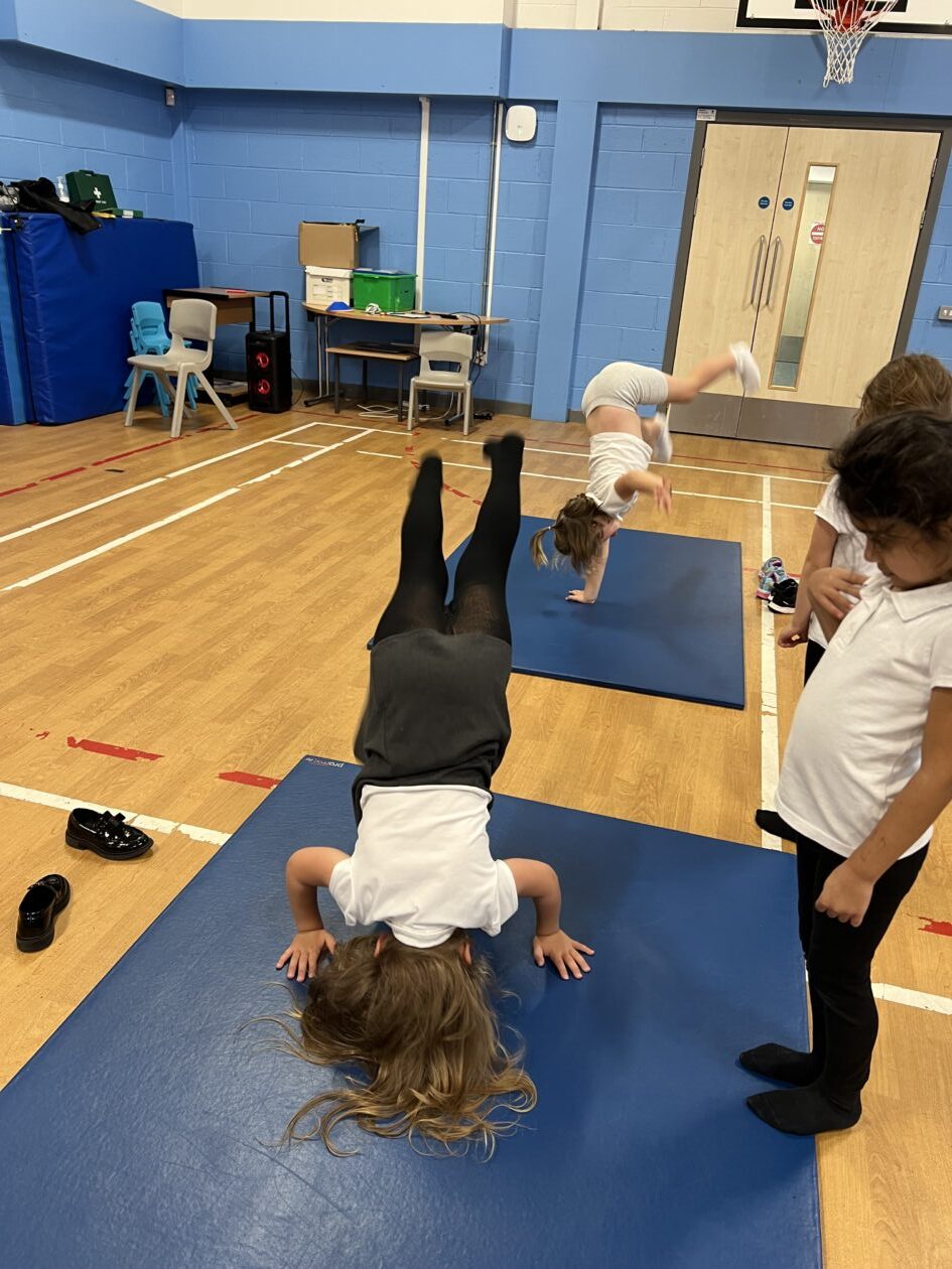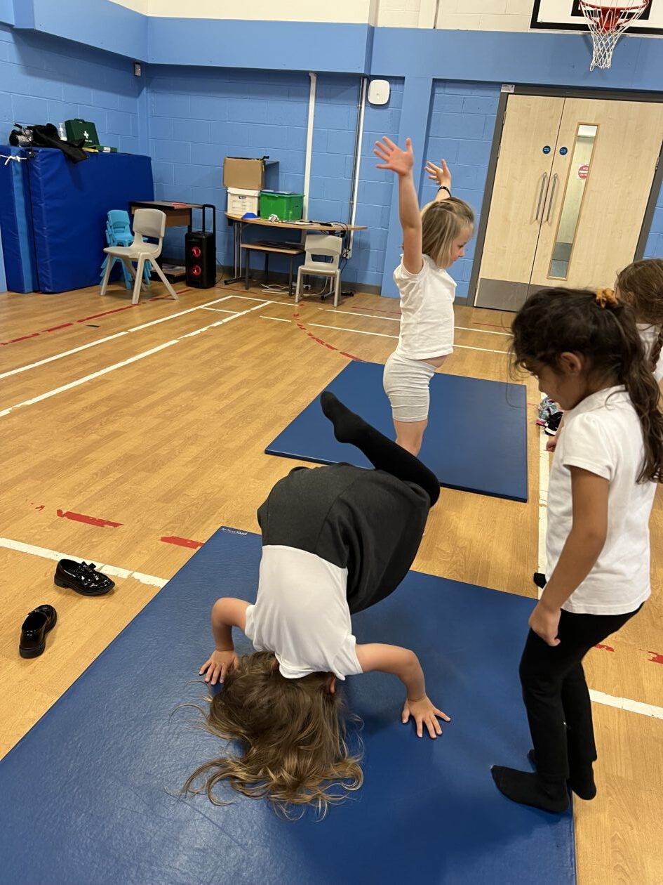 Primary 2 and Primary 3 had a great time at gymnastics club. The children learned lots of new skills and demonstrated flexibility, coordination, and balance. The children worked on cartwheels, forward rolls, a bridge, roundoffs, and a handstand and lots of paired balances.