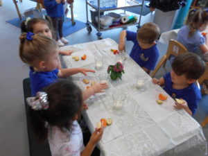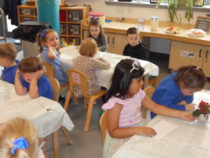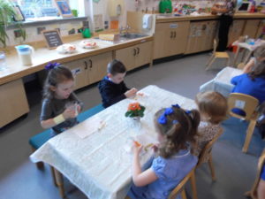 The talking point today was some nice colourful plants where the children discussed the different sizes of the flowers and leaves “small tiny, and big” were talked about . We had a smell of the flowers to see what these smelt like and some of the children said “Lavender, strawberries and orange”.