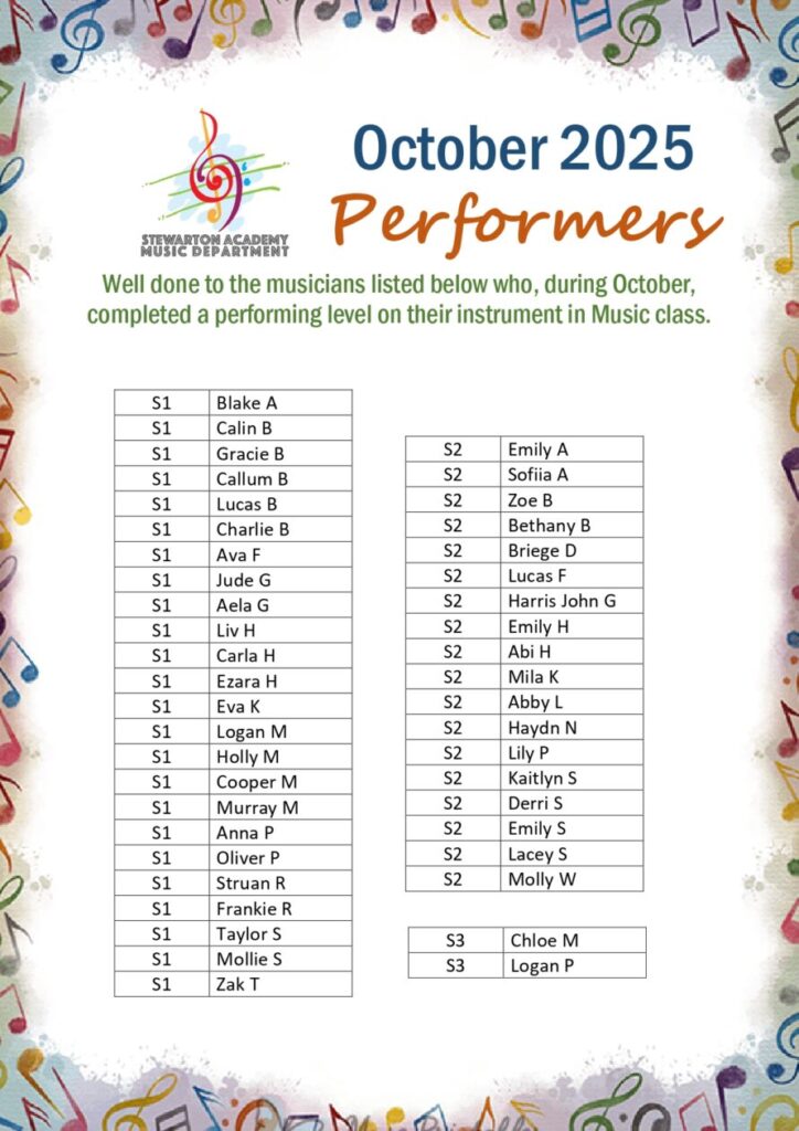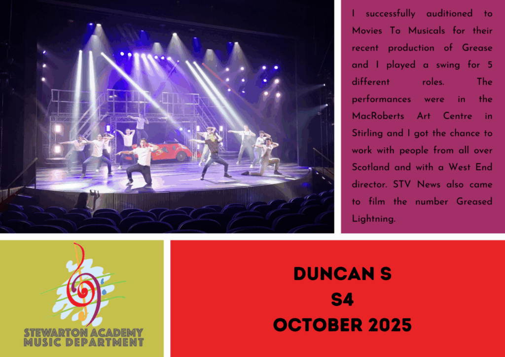 If necessary, we will hold auditions in school week beginning Monday 3rd November in order to select one instrumentalist and one vocalist to represent Stewarton Academy on the night.
