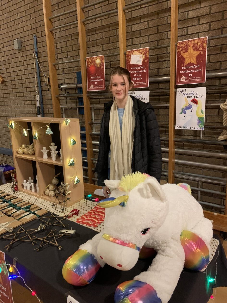 Selling our range of Christmas baubles, cards, ceramics and wooden stars proved to be a success alongside our Guess Sparkle’s Birthday which is fast becoming a music department tradition! Well done to Mr Dodds who won the giant unicorn – we hope he enjoys it!