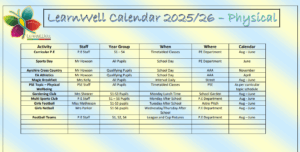 Each year, there will be a calendar of events and initiatives to focus on each of these areas of Wellbeing. There are many pre-existing activities in school which already work towards these areas, but LearnWell will look to build on these and provide a comprehensive plan to complement and enhance support.