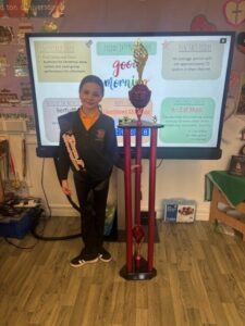 Congratulations Codi for winning this amazing trophy! And for bringing it in to show us all. Codi won her trophy at a national Dance competition, super work Codi!