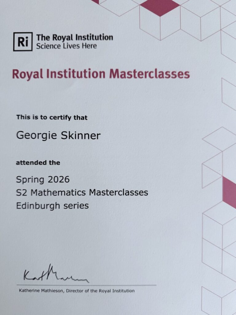 Pupils who attend Problem Solving Club recently took part in the UK Maths Trust Intermediate Maths Challenge, a national competition testing problem solving skills. We are very impressed with these results, especially from our S1/2 pupils as this competition level is aimed at S3-4. All worked very hard, taking away past papers to practise in their own time, and showed a lot of resilience with this year’s fairly tough set of questions.