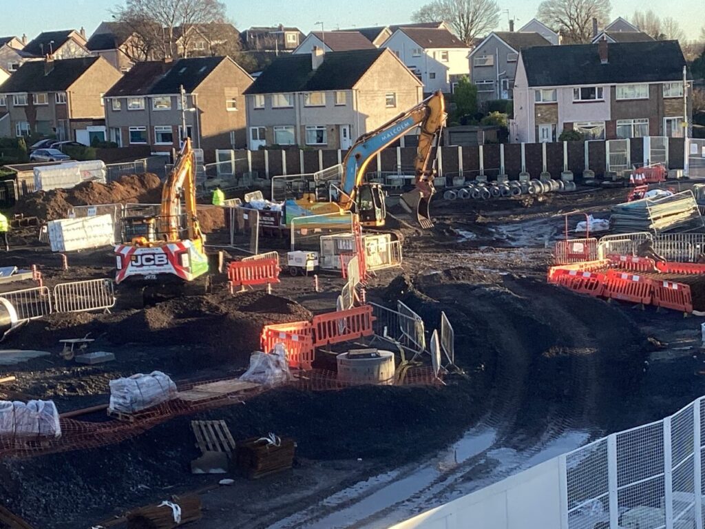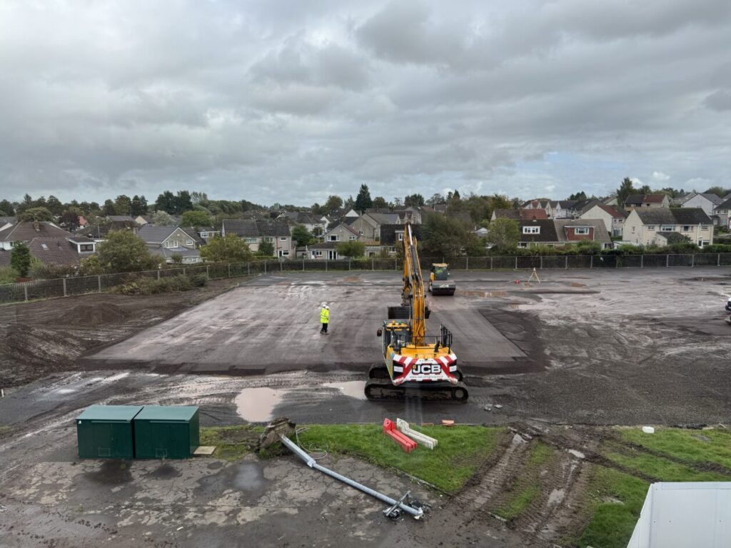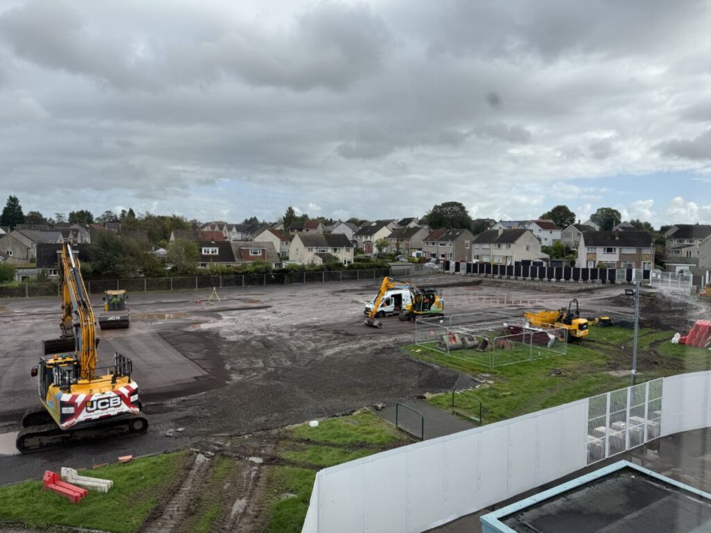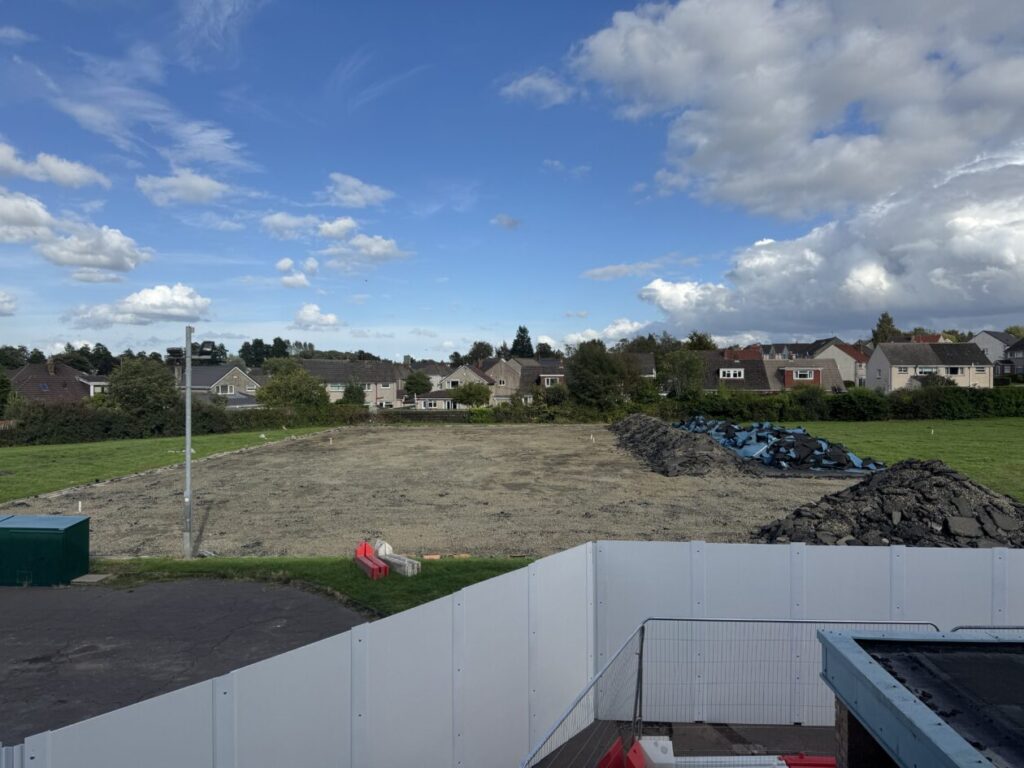 Back in August our MUGA pitch disappeared! All the fencing and the pitch itself were cleared to make way for the new building.