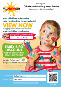 All families should now have been given the opportunity to meet with their child’s keyworker for a progress report. If you have for whatever reason missed this or were unable to attend the original dates, please contact us via email eyc@colqhounpark.e-dunbarton.sch.uk to arrange an alternative.