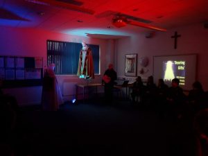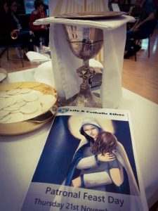 The climax of Catholic Education Week was our Patronal Feast Day. In 2017, Turnbull’s 40th Anniversary and the 100th anniversary of Our Lady’s apparitions at Fatima, we took the Immaculate Heart of Mary as Our Patron. On the 21st of November that year, Archbishop Tartaglia consecrated the school and all who are connected to the Turnbull family to the Immaculate Heart of Mary. This year we were pleased to welcome Fr McGrath (St Aloyisius, Springburn) as he offered the Mass and helped us to renew our consecration. In his homily, Fr McGrath encouraged us to reflect on our identity as brothers and sisters of Jesus as per the Gospel reading, and the impact that this should have on our lives and the lives of those around us. Mass began with a rousing rendition of ‘Immaculate Mary’ which is becoming something of a School Anthem, and ended with a nod to this Sunday’s Feast for Christ the King with ‘Hail Redeemer, King Divine’ accompanied by the school band. Two house groups attended Mass, and our S1 prayer competition winners read their winning intercessions. Â