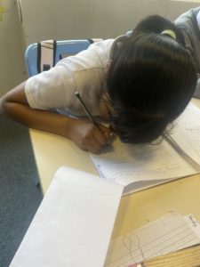 Once the shorts stories were finished the class participated in a detailed peer assessment process that focused on evaluating the if the ideas flowed, if the story made sense and correct punctuation.