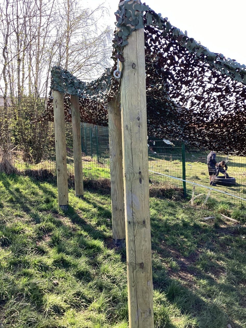 They voted and chose a rainbow pergola, some log seating for our fire pit area, a scrambling net and a pull up rope. We had some money left over so also managed to get den poles and a camo net.