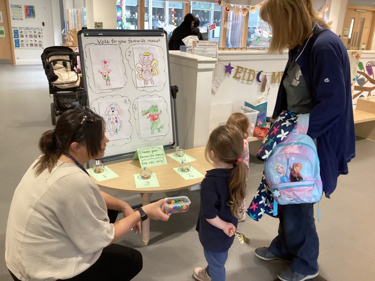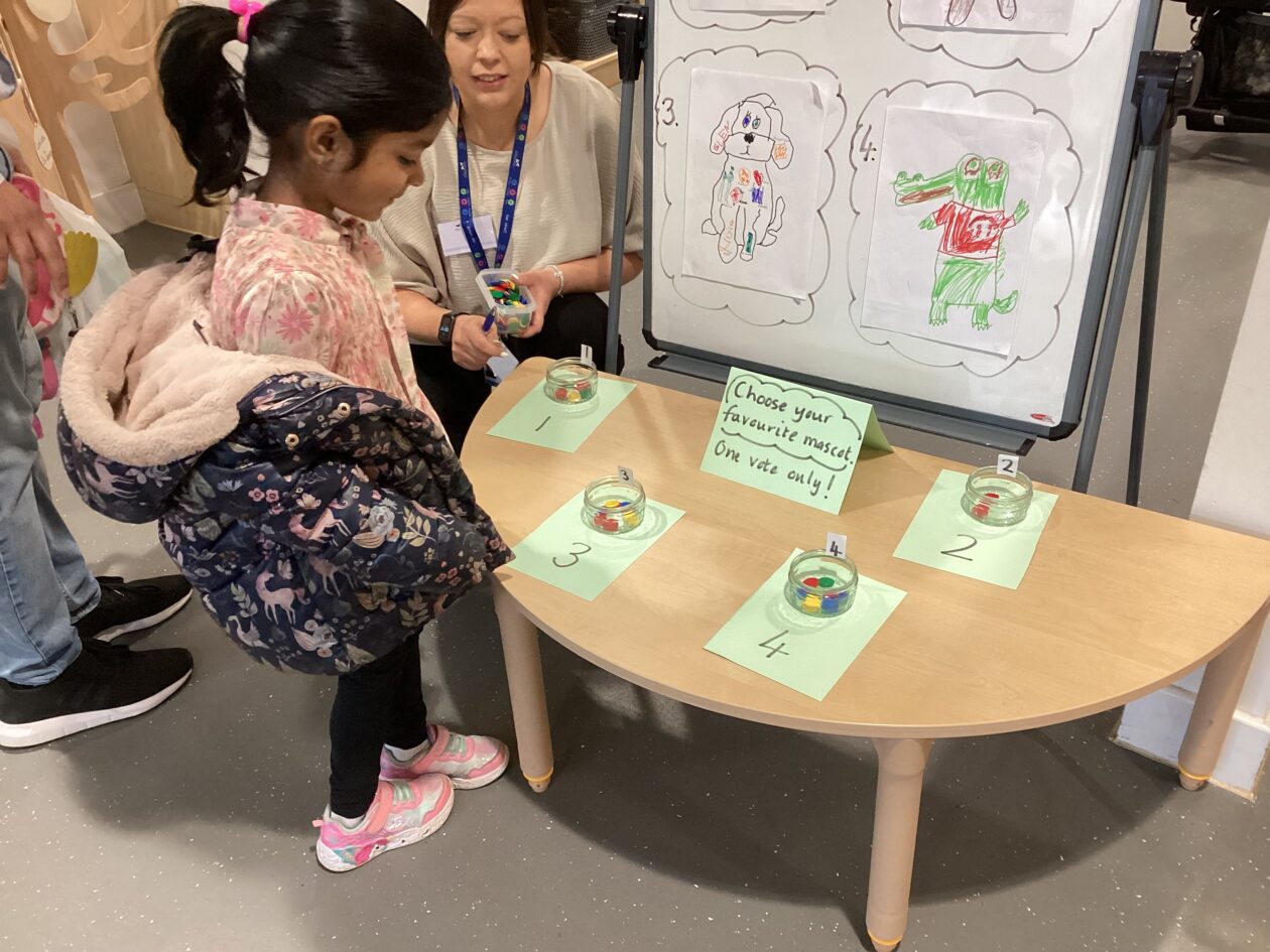 We had a competition and every child had the opportunity to design a mascot. We selected 4 favourites and voted to decide which design would become our mascot.