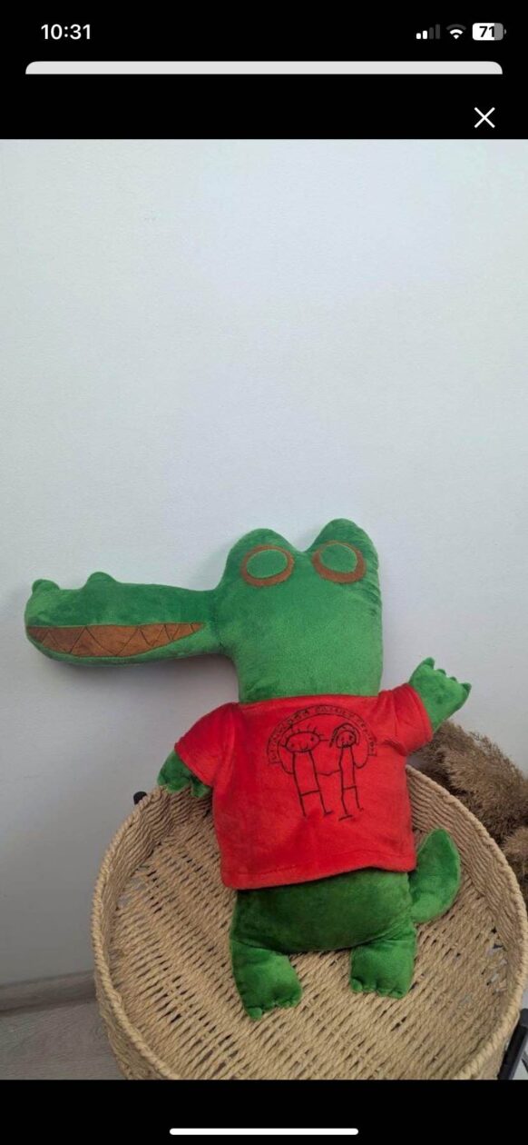 The winning design was Mr Crocodile and we got him made into a cuddly toy. Doesn’t he look great. Well done to Leo for producing the winning design.