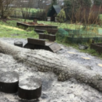 When the Queen died in 2022 many members of the public laid flowers at the nearby council offices in her memory. We were asked to make compost from the flowers afterwards. The compost took a long time to make and was finally ready in March 2025.
