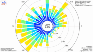 Some polar graphs may go further and show another level of detail. A wind rose will show not just the occurrence of winds from different directions but also the wind speed.
