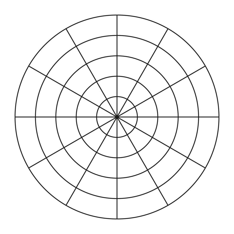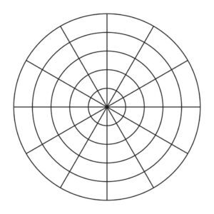 A scale is used which relates to the radius of the diagram. The scale and intervals will depend on the size of the diagram and range of data being collected. It is usually numbered along the north axis, or another appropriate space with little data (e.g. north-east in the example shown).