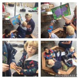 All things wild and wonderful has been a continuing theme in our garden this week! We love small world play and are always keen to introduce our favourite animals, figures and vehicles! Small world play is a fantastic way to develop our imagination, creativity and problem solving skills. We loved one of our friend t-shirts and this sparked the idea to explore wild animals! Delving into our resources we discovered elephants, tigers, gorillas, rhinos, tigers and lions “the king of the jungle!”