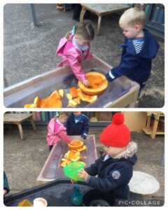 We have been exploring textures and smells with the pumpkins and creating witches potions with water and various different funnels!