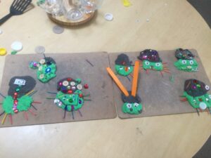 The children have also been developing their creativity and imagination skills by making their own spooky witches, spiders and zombies with the playdough and a variety of loose parts.