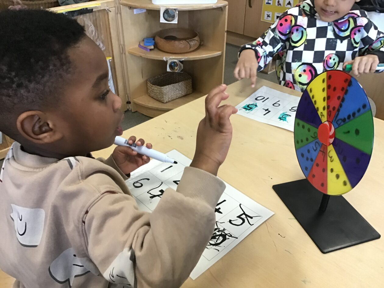 We enjoyed playing ‘Spin the Wheel’, where the children practised their subitising skills by quickly recognising how many spots they could see and matching the quantity to the correct number. The children had lots of fun taking turns and building their confidence with numbers through this game.