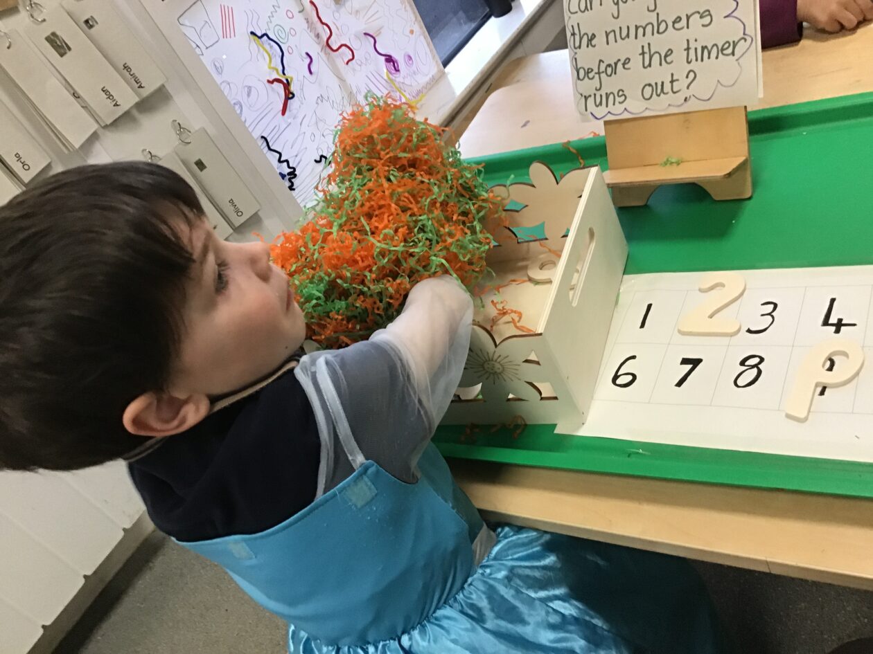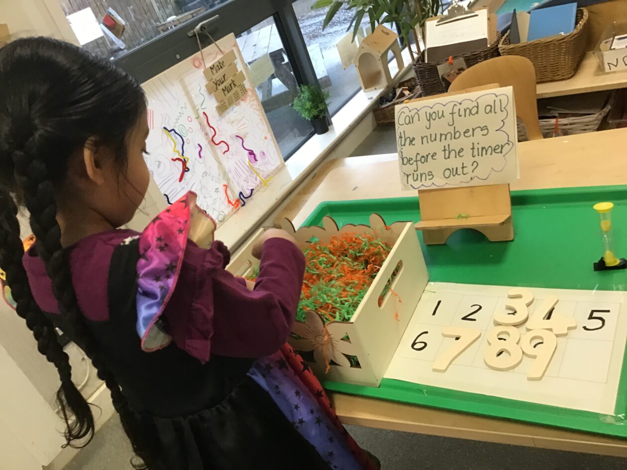 The children also loved challenging themselves in our ‘Number Hunt’. They searched carefully to find the numbers before the timer ran out, showing great focus and determination. Some of the children even challenged themselves further by reducing the time with each attempt to see if they could beat their previous record!